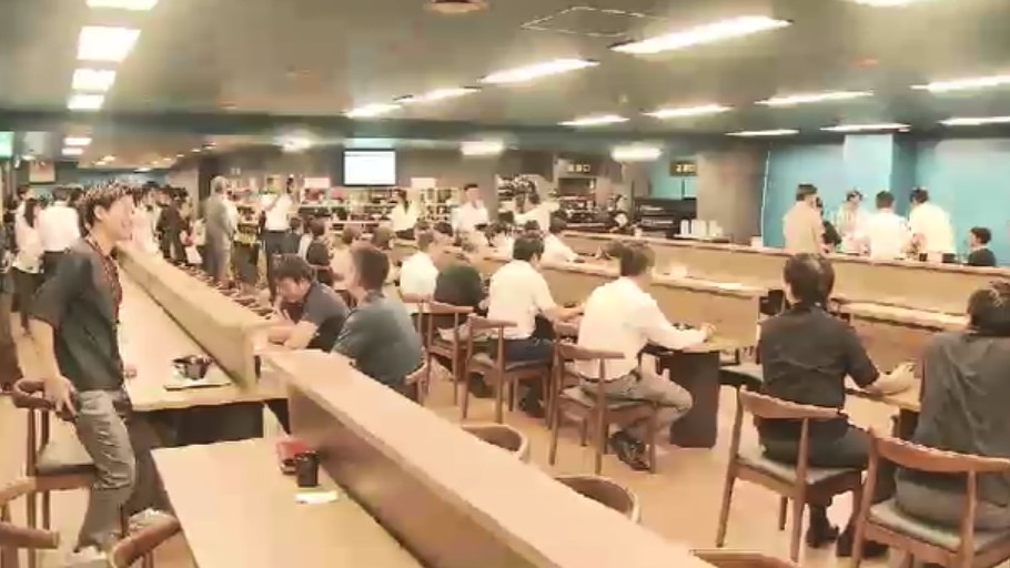 お昼どき、ぞくぞくと訪れる北九州市の職員たち。