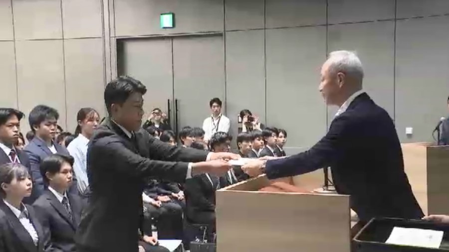 そのあと内定者を代表して、九州産業大学に通う副島雄一さんが内定証書を受け取りました。