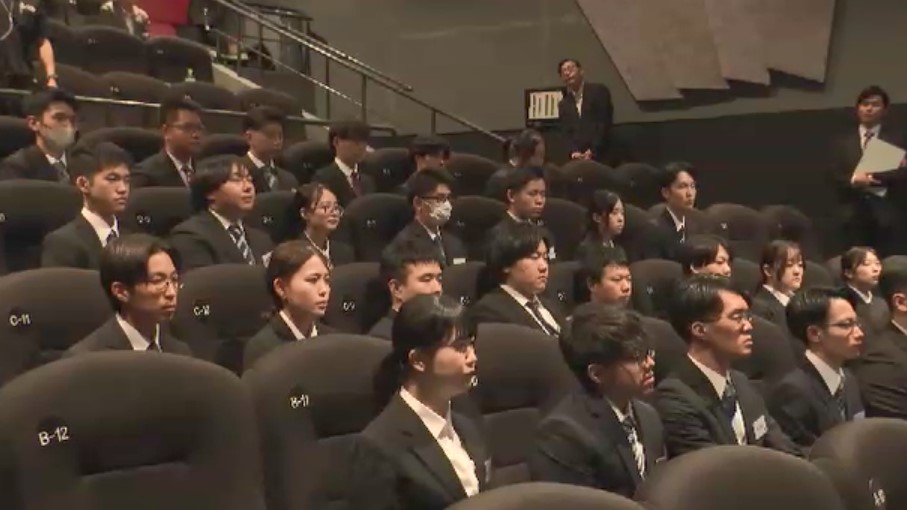 立食パーティーや映画館で…企業の内定式も様変わり 家族からのサプライズメッセージで決意新たに 新社名で新たな一歩も 福岡