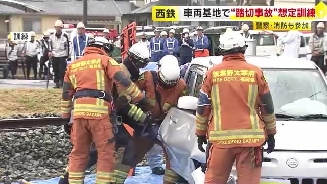福岡県筑紫野市にある西鉄天神大牟田線の車両基地で、踏切事故を想定して警察や消防も参加した大規模な訓練が行われました。