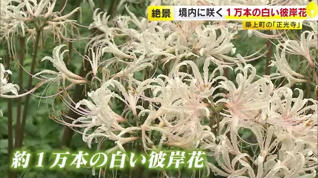 約1万本の白い彼岸花が見ごろに 住民が世話重ねる「今年はたくさん咲いてくれてうれしい」 築上町の正光寺 福岡