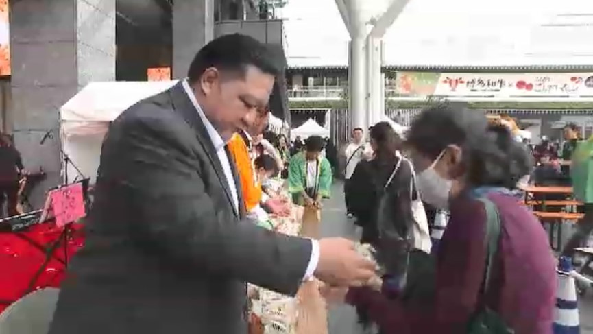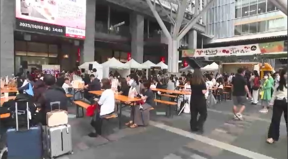 JR博多駅前で『ごちそうマルシェ』 「博多和牛」「糸島産ソフトクリーム」など福岡グルメが集結 元魁皇・浅香山親方も来場し“おいしさ”アピール 10月5日まで