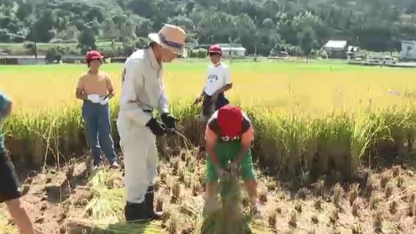 福岡県北九州市の小学生が自分たちで植えた稲を昔ながらの手作業で収穫しました。