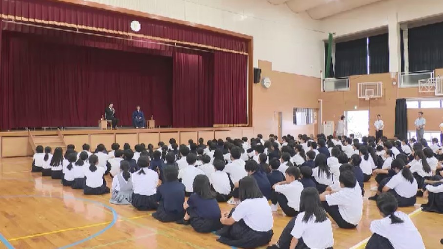 小倉百人一首競技かるたの名人が7日、福岡県古賀市にある母校の中学校を訪れました。