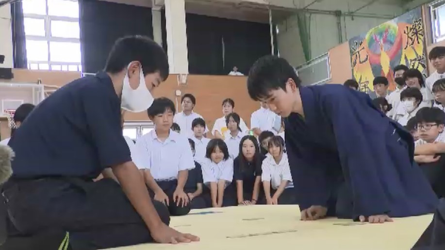 「競技かるた」自見壮二朗名人(24) 古賀市の母校に凱旋 中学生2人1組と“対戦”も 福岡