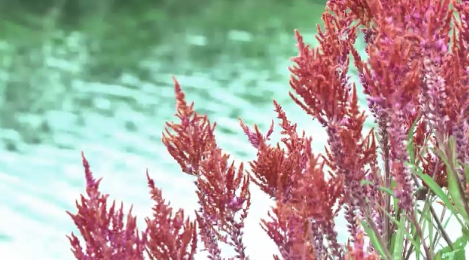 秋の風が心地よく吹くこの季節、水辺を彩る鮮やかな秋の花「ケイトウ」が見ごろを迎えています。