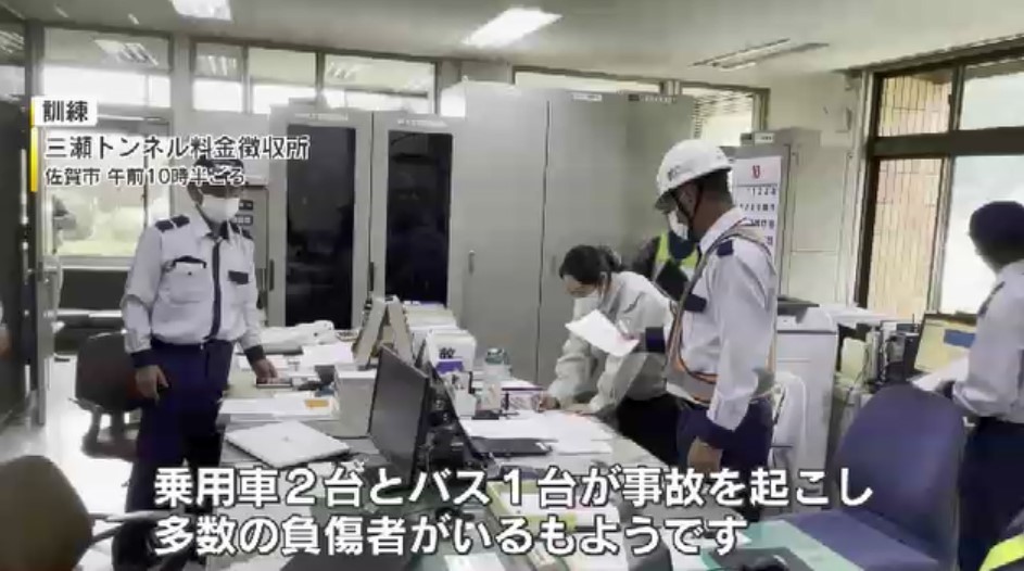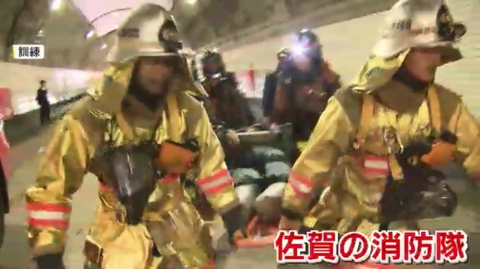福岡と佐賀を結ぶ三瀬トンネルで14日、複数の車が絡む事故を想定した3年に1回の防災訓練が行われました。