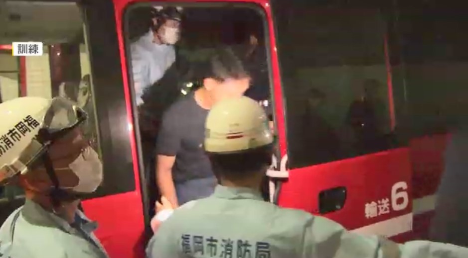佐賀方面から現場に到着した消防隊は、乗用車に閉じ込められた人たちを救出し、安全な場所に運びます。