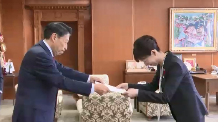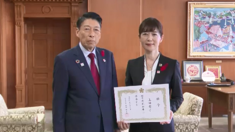 副知事を約10年間務めた大曲昭恵さんの後任として、17日朝、服部知事から辞令を受け取った上田副知事は「副知事倫理条例を遵守し職務を執行します」と決意を述べました。
