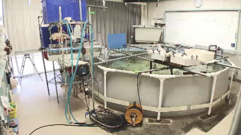 広い教室のほか電気や水道などもあり、サーモンの養殖に適した環境だといいます。