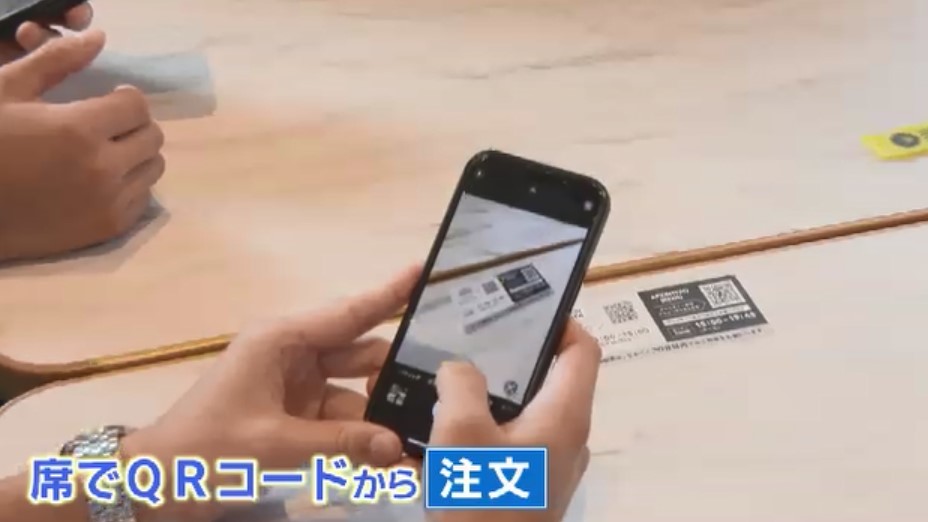 テーブルに貼られているQRコードを読み取り自分の席から注文し、出来上がるとモニターに番号が表示され、受け取りに行く仕組みが浸透し、今も1日に500食ほど出るものの5分ほどで提供できるようになっていました。