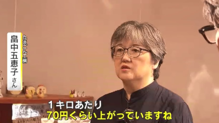 「(卵の)相場的には去年の同じ月と比べると1キロあたり70円くらい上がっています」