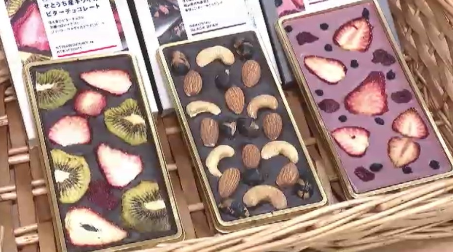 鮮やかなドライフルーツをちりばめたチョコレートなど、注目のスイーツが並びます。