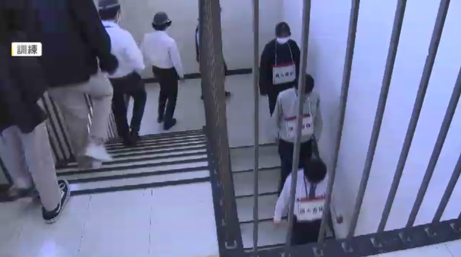 訓練は6日午後2時すぎ、地震の揺れが原因で9階から出火したとの想定で始まりました。