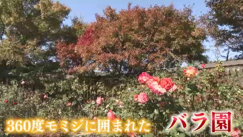 360度ぐるりとモミジに囲まれたバラ園では、色とりどりの花が咲き誇っていました。