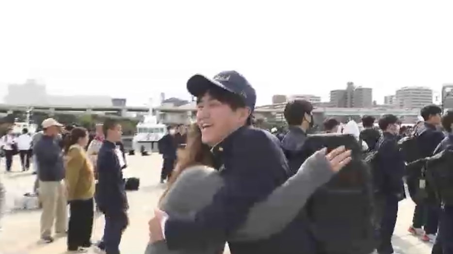 最後の大仕事を終えた実習生たちは、家族や友人たちが待つ博多港へ。