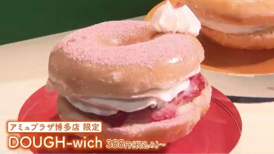 アミュプラザ博多店では、そのオリグレに博多あまおうやホイップクリームをサンドした、4種類のプレミアムドーナツが登場!