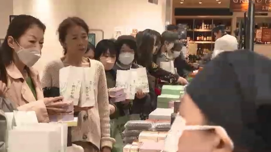 「こちらの一角では普段は各地でしか買えないスイーツが集められていて行列ができている」
