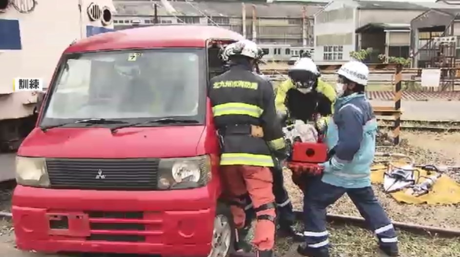 JR九州は13日、踏切での列車と車の衝突・脱線事故を想定し、警察や消防と連携した総合復旧訓練を福岡県北九州市で行いました。
