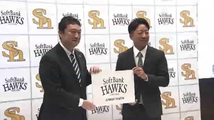 福岡市内で13日、設立会見が行われ、ホークスの三笠杉彦GMと初代監督を務めるOBの嘉弥真新也さんが出席しました。
