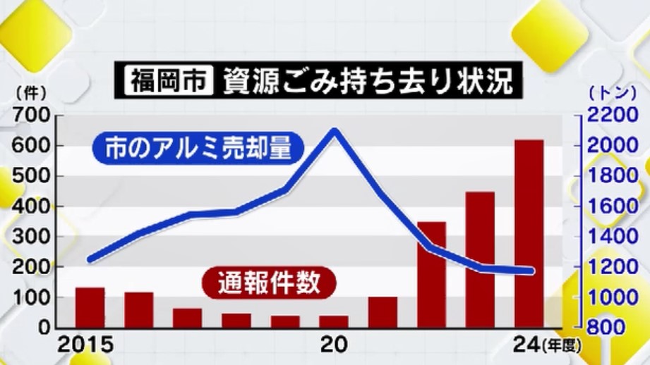 福岡市で家庭ごみとして出されるアルミ缶、これが持ち去られる行為が後を絶ちません。