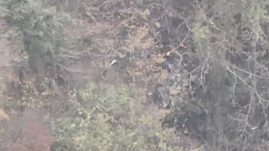 「八女市星野村上空です。山の中に墜落した機体でしょうか、オレンジ色の火が上がっているのが確認できます。付近では消防が活動しています」