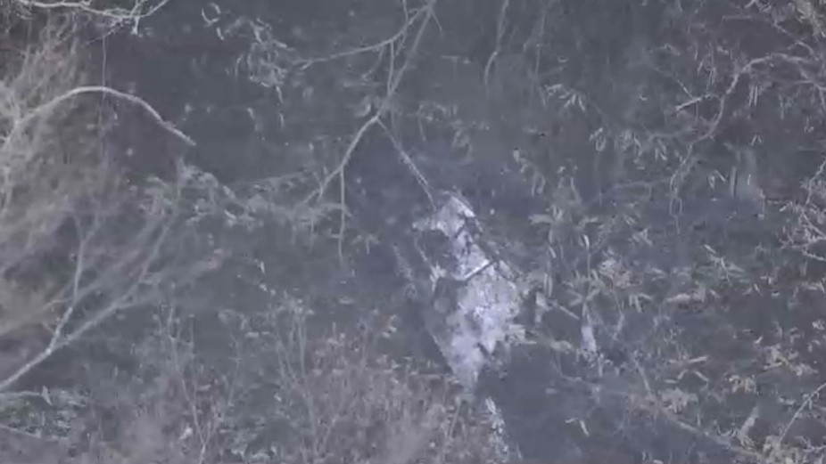 「小型機が墜落した現場です。消防の姿が確認できます」