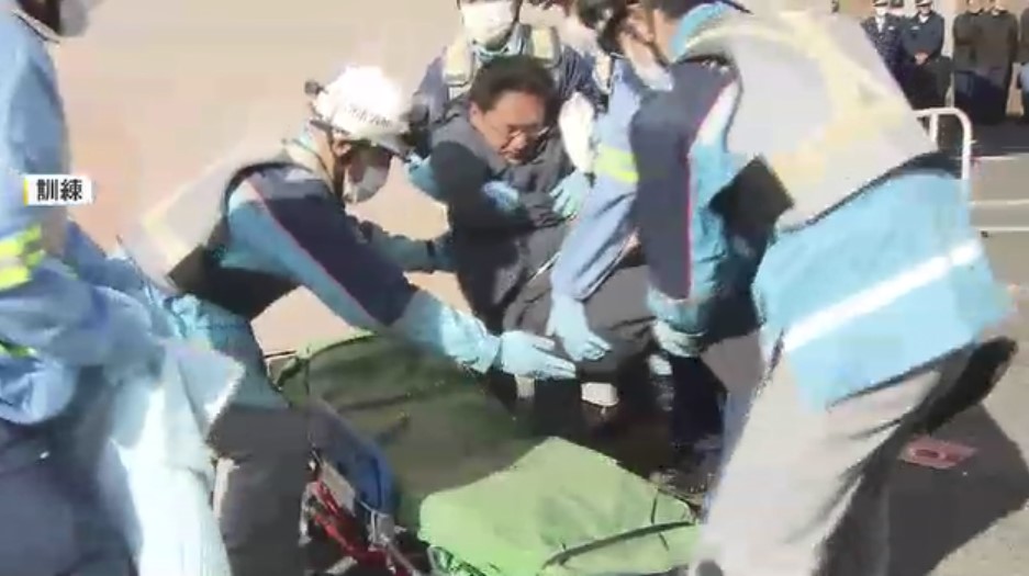 歩道で通行人2人が男にナイフで切りつけらる事件が発生したとの想定で行われ、警察の初動対応や消防の救護処置の流れについて確認しました。