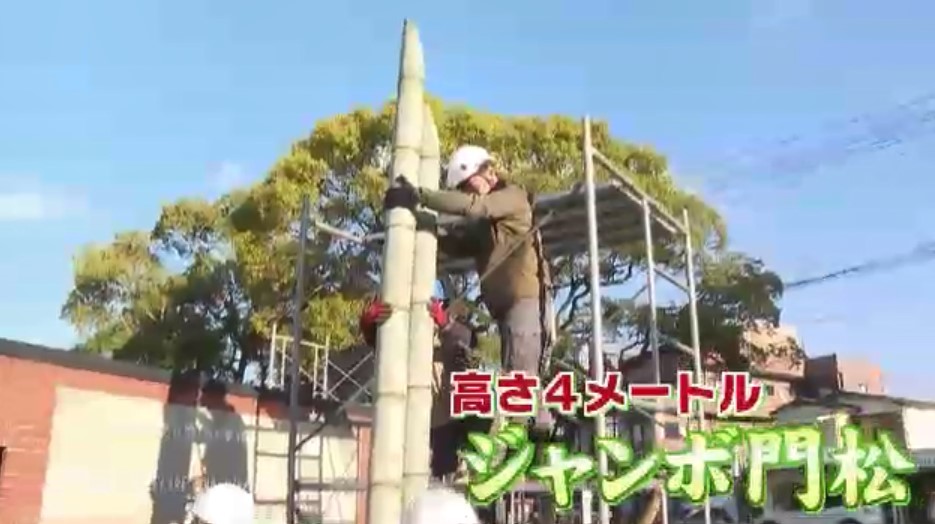 ここで作られるのは、高さ5メートルの竹を使った「ジャンボ門松」です。