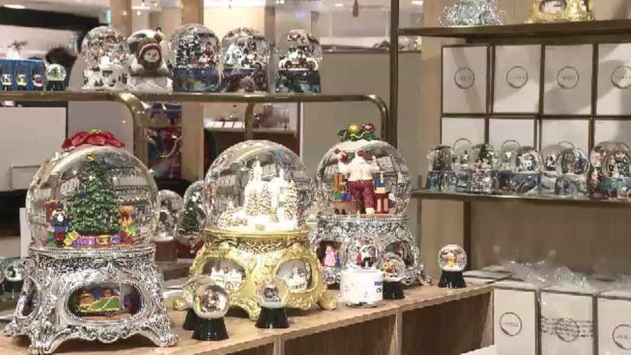 インテリアを彩るきらびやかなスノードームもずらりと並びます。