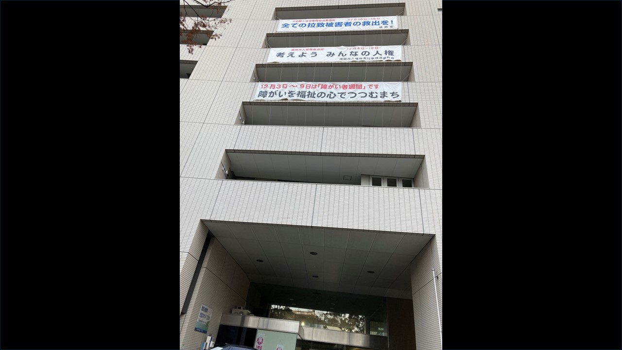 横断幕は「北朝鮮人権侵害問題啓発週間」を周知する内容で、当時8人で作業に当たっていたということです。