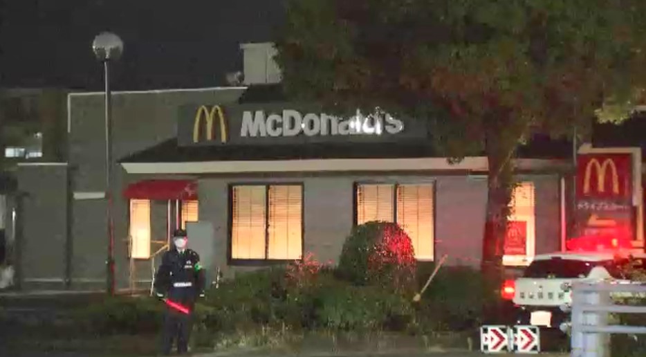 「事件があった現場です。飲食店の入口付近で警察が鑑識活動を行っています」