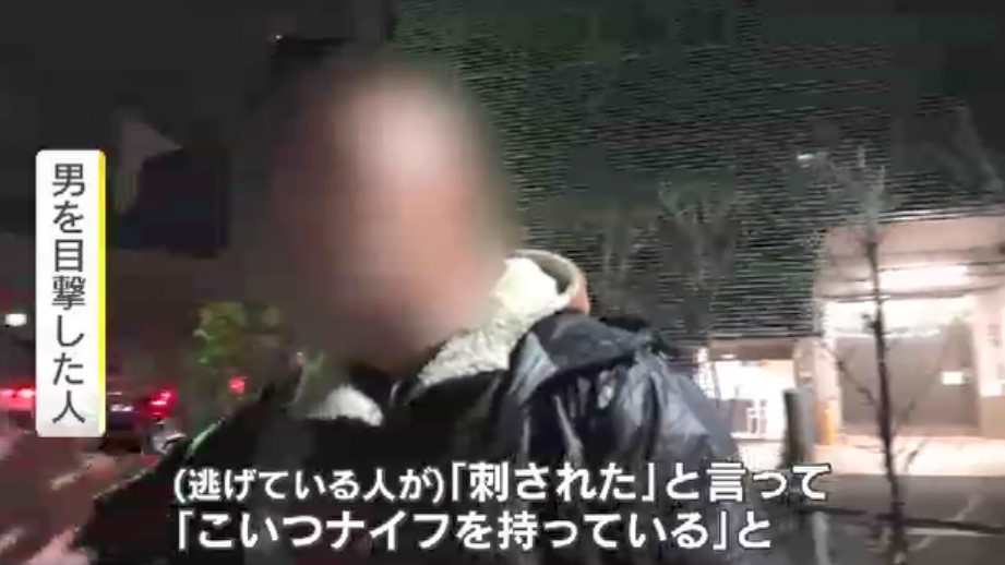 「(逃げている人が)『刺された』と言って『こいつナイフを持っている』と。逃げていた人を追いかけていた男(犯人)がいた」