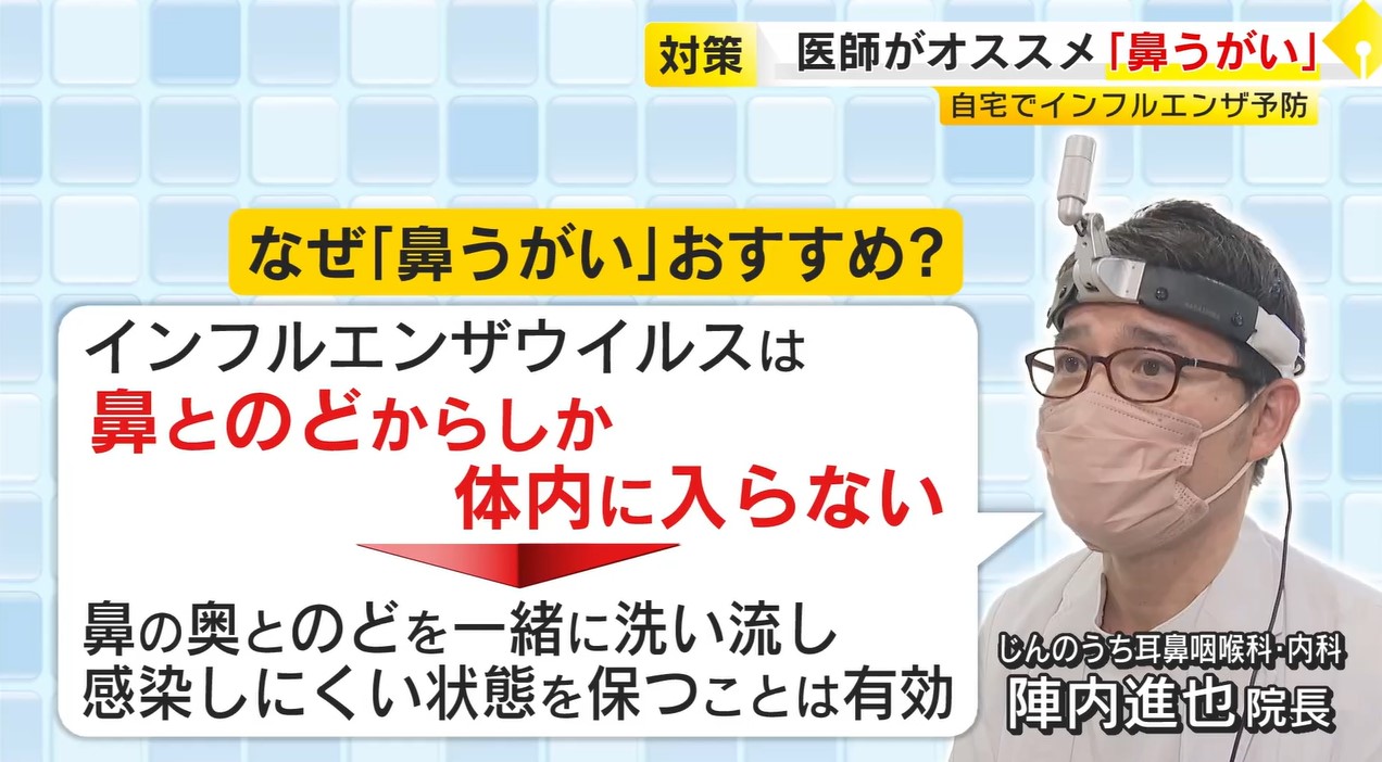 「『鼻うがい』もいいかもしれない。ウイルスを洗い流すことで、絶対的な感染しやすい量を減らす効果があります」