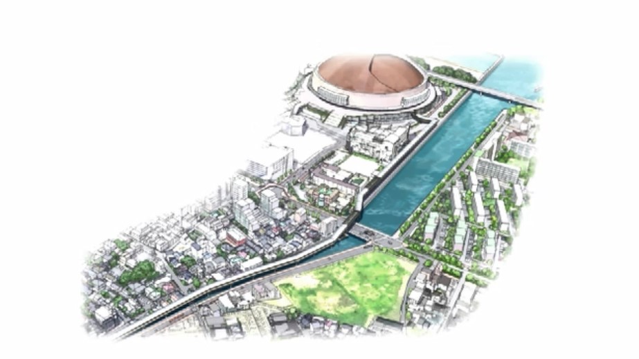 現状の計画では、唐人町駅の周辺からドームの3番ゲート付近まで、川の上に屋根付きの動く歩道を高架構造で設置します。