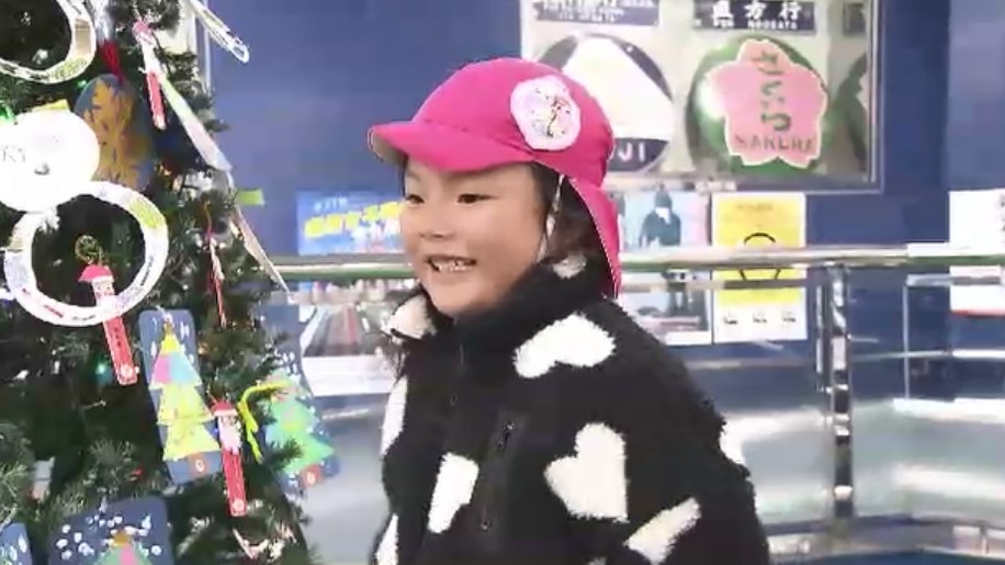 福岡県北九州市のJR戸畑駅で17日、交通安全の願いを込めて保育園児たちが飾り付けたクリスマスツリーの点灯式が行われました。