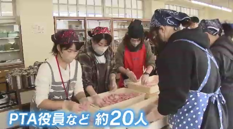 22日午前9時すぎ、北九州市小倉南区の菅生中学校の調理室に集まったのはPTAの役員など約20人。