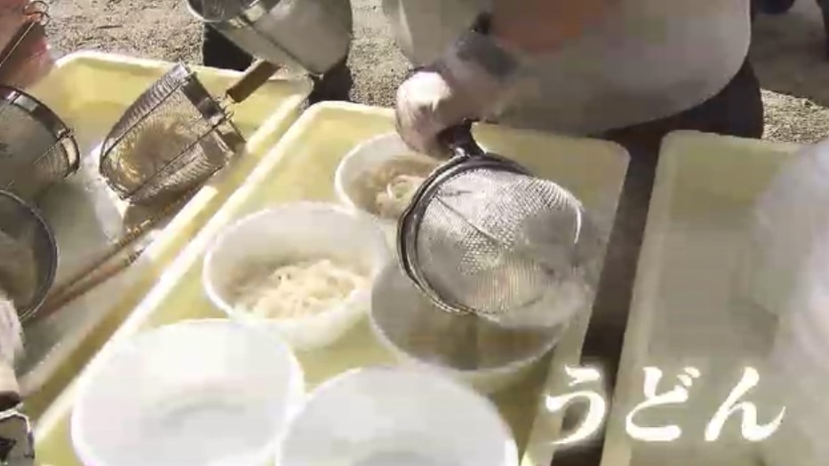 完成したうどんはさっそく3年生150人に振る舞われました。