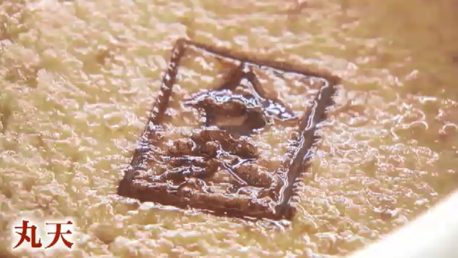かまぼこや油揚げなど様々な具材を器に入れ、仕上げには「合格」の焼き印が押された丸天を乗せます。