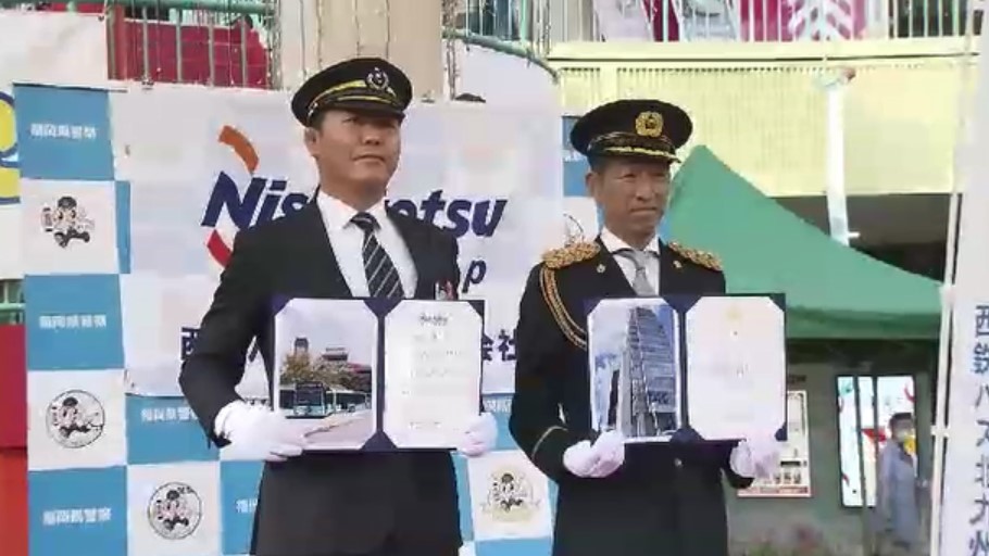 西鉄バスと警察が「飲酒運転撲滅キャンペーン」 路線バスや白バイがパトロール・広報活動 福岡・北九州市