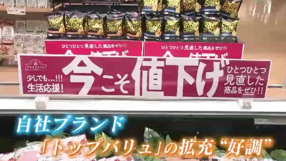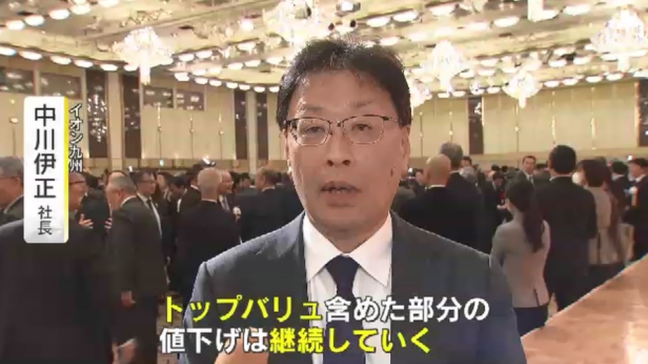 イオン九州ではこの物価高の中、比較的安価な自社ブランド「トップバリュ」の拡充が好調で、中川社長は今年も引き続き食料品や日用品といった自社ブランドの値下げを図っていくと話しました。