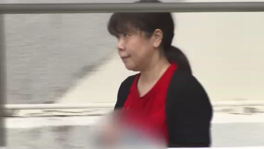 ジャケットを着て法廷に現れた白髪混じりの女。