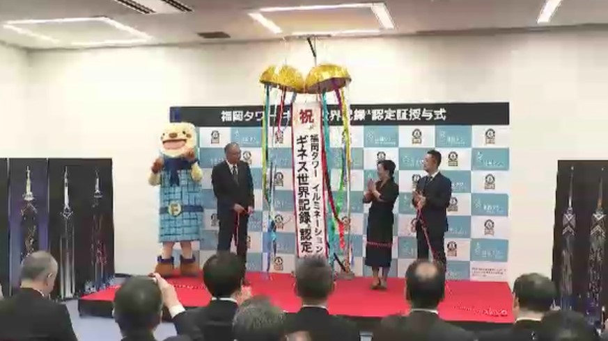 2014年から続くこのイルミネーションが合計3935日間にわたり、「電波塔がピクセルアニメイルミネーションを点灯した最多日数」としてギネス世界記録に認定され、22日に認定証の授与式が行われました。