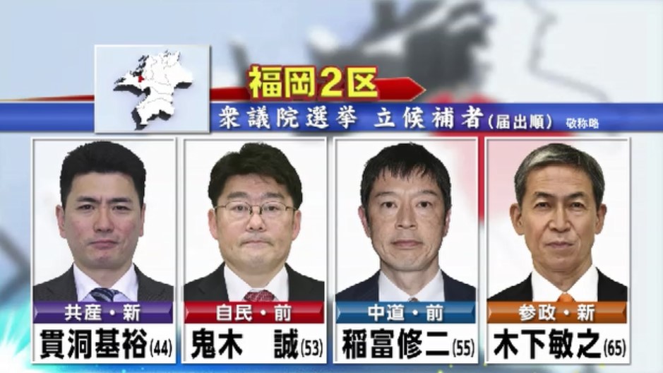 このうち福岡市中心部の都市型選挙区の福岡2区には、届け出順に以下の4人が立候補しました。