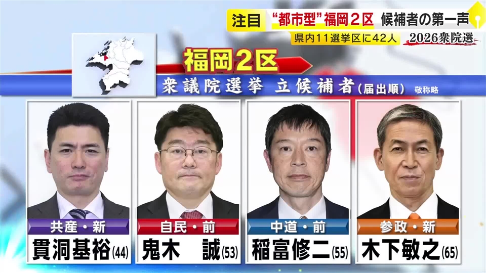 27日に公示された衆議院選挙、福岡県内11の小選挙区には42人が立候補しました。