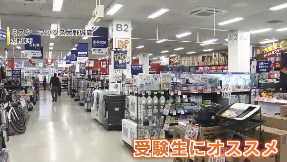 受験シーズンを迎え、福岡県内のディスカウントストアで受験生応援グッズが展開されています。