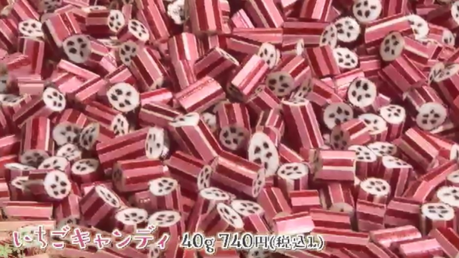 かわいらしいイチゴ柄のキャンディが完成しました。