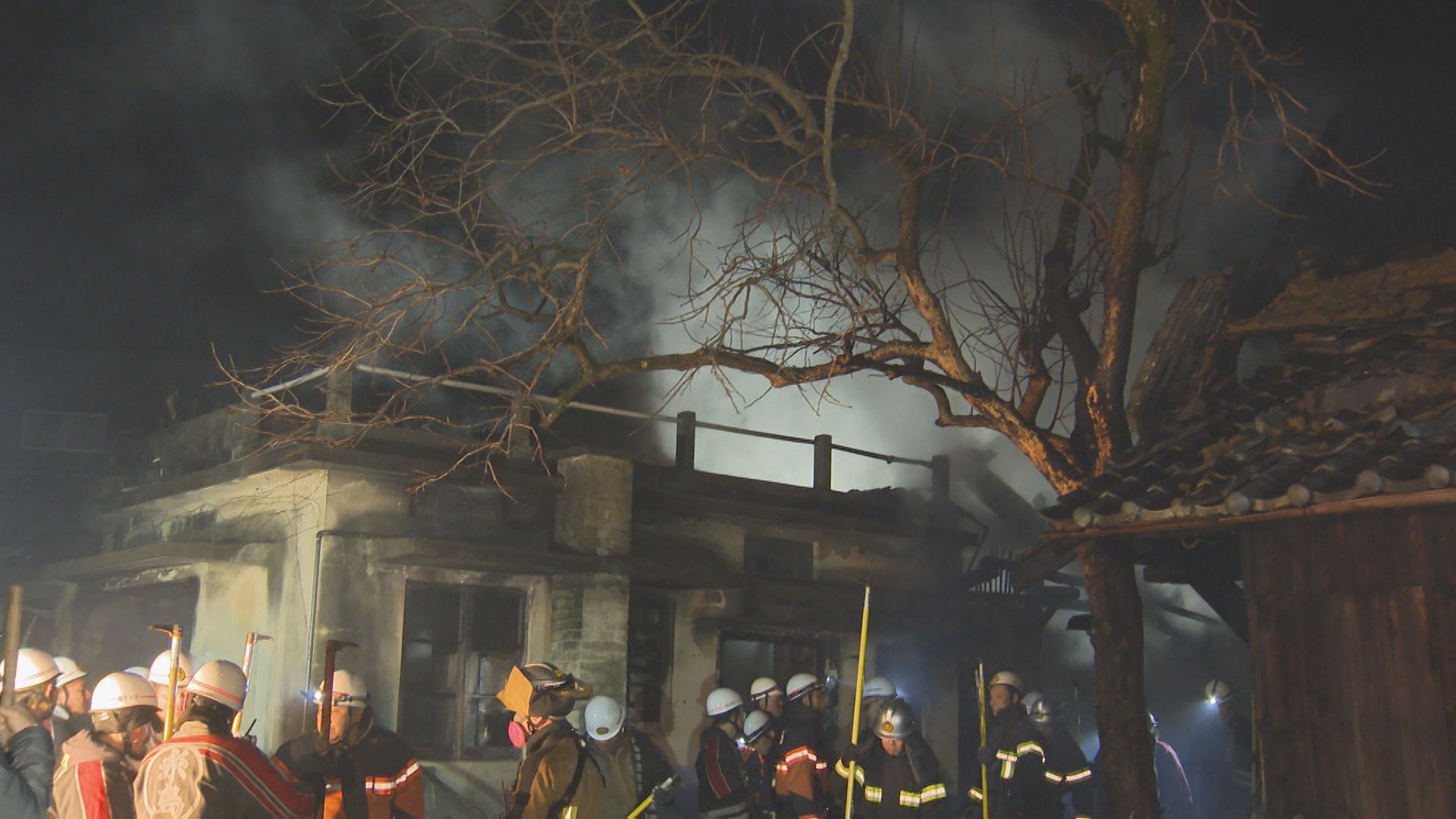 築80年の古民家全焼 未明の通報「ストーブから火が出て・・・」宿泊施設やシェアハウスとして利用 鎮圧状態となるも飛び火とみられる延焼が発生 現在も別の住宅で消火活動中 福岡・糸島市