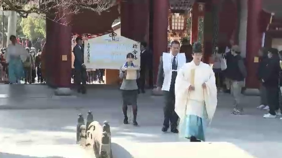 2日午前、学問の神様で知られる太宰府天満宮に全日空のスタッフが訪れ、特大の絵馬を奉納しました。