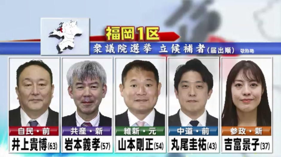 自民と維新の与党対決に、新党の中道、そこに参政と共産が斬り込むという政治の構図が凝縮された福岡1区です。